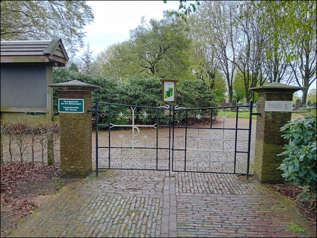 De ingang van het kerkhof op de Baargakkers an de Grönnegerweg bee Deever.